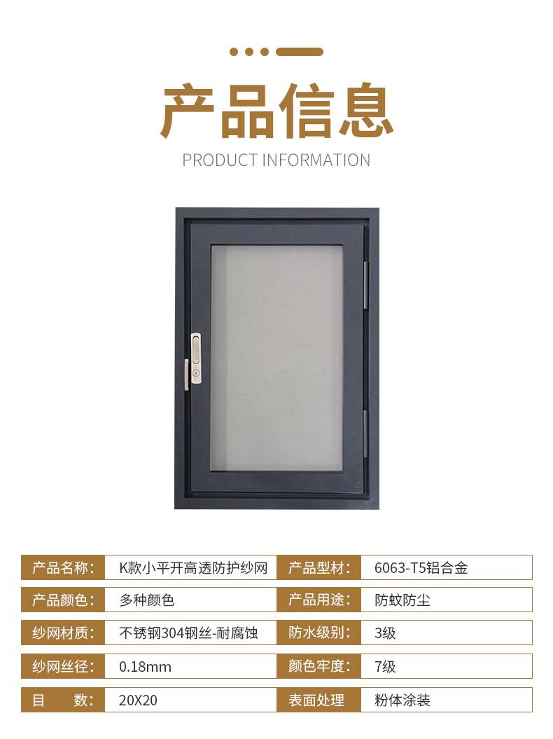 產品名稱:韋柏小平開金剛網防護紗窗